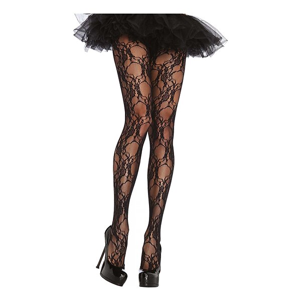 Svarta Spets Strumpbyxor Floral Deluxe One size