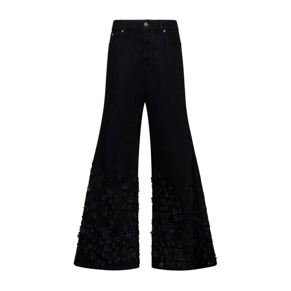 John Richmond, Byxor , Dam, W25, Bomull, Svarta herr utsvängda byxor med dekorativa detaljer