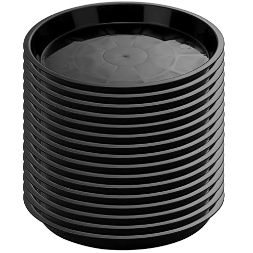 PINGEUI 15-pack svarta blomfat, 25 cm droppbricka i plast, runda växter, trädgårdsfat för inomhus- och utomhusbruk, växtkrukor