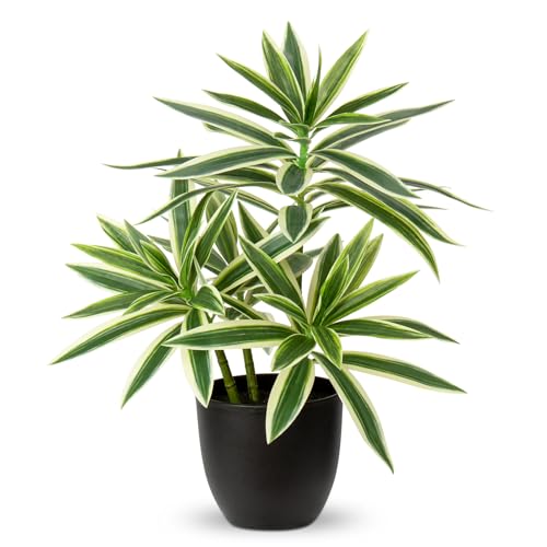 Oairse 41 cm falska växter i svarta krukor konstgjord Dracaena-växt dekorativa falska krukväxter Faux Dracaena Reflexa inomhusväxt realistisk husväxt för hem badrum kök dekoration