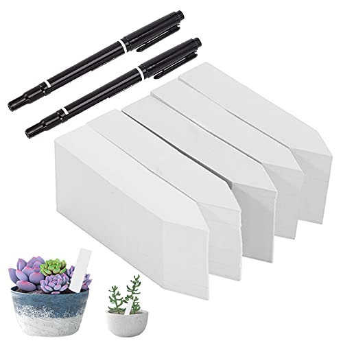 JOKILY 500 stycken växtskyltar i plast, 10 x 2 cm, vita växtetiketter, väderbeständig plast trädgårdsetiketter med 2 svarta pennor, trädgårdsväxt, etiketter, växter