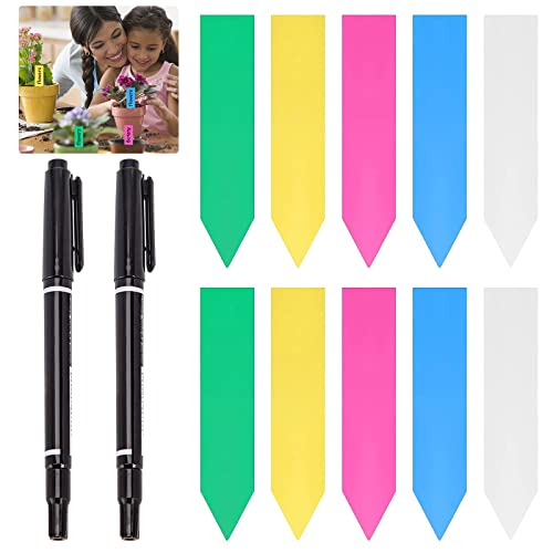 JOKILY 500 stycken växtskyltar i plast, 10 x 2 cm, färgglada växtetiketter, väderbeständig plast trädgårdsetiketter med 2 svarta pennor, trädgårdsväxt, etiketter, växter
