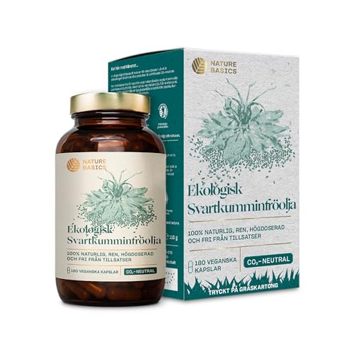 Ekologisk svartkumminolja - 180 kapslar högdos / 500 mg högkvalitativ ekologisk svartkumminolja & 250 mg linolsyra per kapsel/Vegansk, certifierad och hållbar i en burk