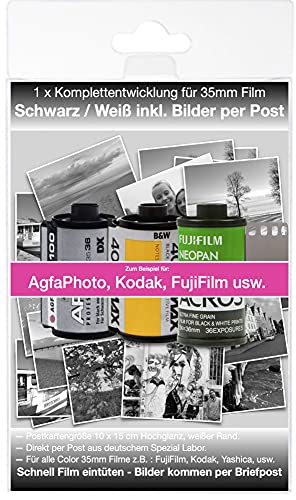Svart/vit foto komplett utveckling via post – för liten bild svart/vit negativ film upp till 36 bilder 10 x 15 cm vykortsstorlek, bilddata dessutom på begäran via WE-överföring.