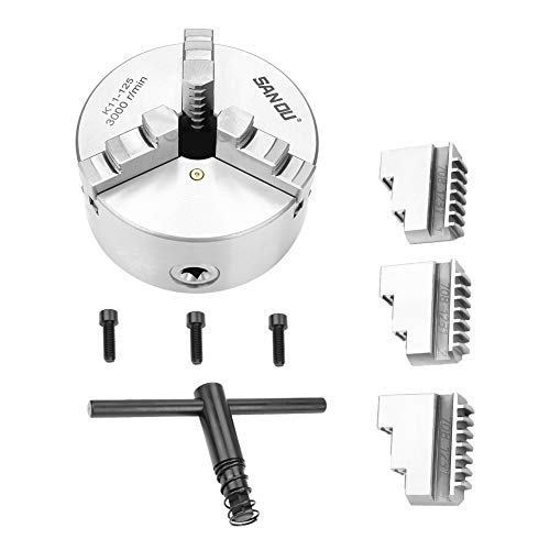 Precisions 3 bakfoder, drivsäcksfoder, svarvchuck självcentrerande 3-backs roterande chuck för slipmaskiner, fräsmaskiner, borrmaskinstillbehör, etc (125 mm)