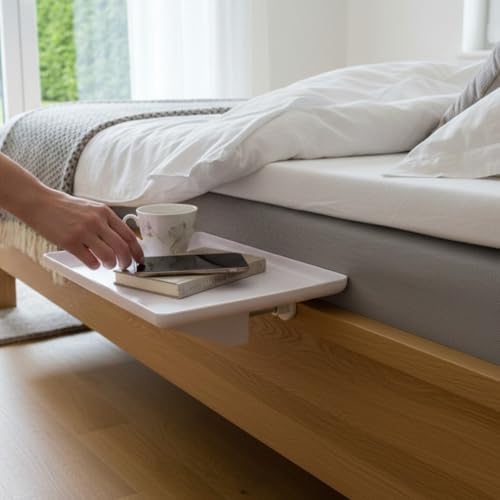 3 PAGEN® Sänghylla, nattduksbord för upphängning för säng och våningssäng, hylla för våningssäng med kabelhållare, svävande sängbricka, kan belastas upp till 11 kg, vit, ABS