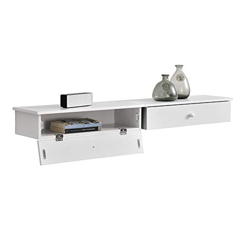 WOLTU Hängande nattduksbord, svävande nattduksbord med låda, öppet fack, vägghylla, sängbord, 40 x 31 x 35 cm, nattkonsol, väggskåp, vit, av träbaserade material, NTS03ws