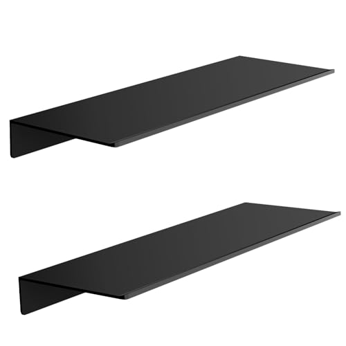 HNVNER Vägghylla i Metall Svart, Dekorativa Hyllor för Väggar, set om 2, 40cm Svävande Hylla, Vägghylla för Presentation för Sovrum, Vardagsrum, Badrum, Kontor