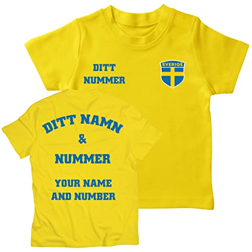 lepni.me Barn T-shirt Sverige Fotbollströja med Ditt Namn och Nummer | Svenska Flaggan Märke Personlig Jersey Custom Topp | Fans av VM 2022 (3-4 år Gul Flerfärgad)