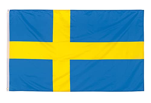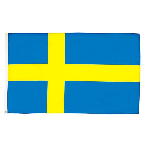 AZ FLAG - Sveriges flagga - 150 x 90 cm i polyester - Svensk flagga med integrerade mässingsöglor - 80 g