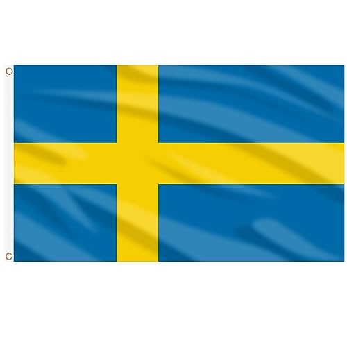 AhfuLife Sveriges flagga 1,5 m x 0,9 m för festdekorationer, 1 st stor svensk flagga dubbelsidig med mässingsöljetter för nationaldag fotboll trädgård gatufest dekorationer