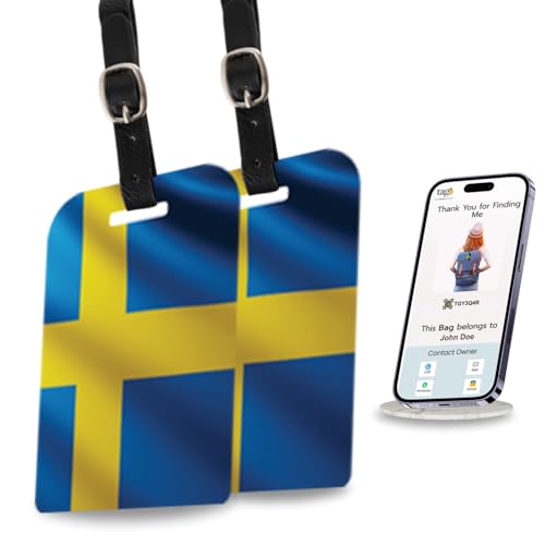 tag8 Väska säkerhet bagageetiketter, 2 st Sveriges flagga väsketiketter med flygplatsspårningskod, resväska bagagelappar, resväska bagagemärke | sluta tappa, börja tagga
