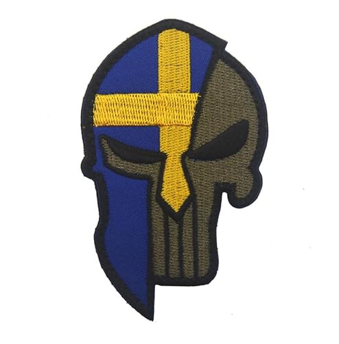Aspcsmomt Sveriges flagga dödskalle lappar, broderad taktisk moral svensk straffare lapp krok och ögla fästelement sy på ryggsäck jacka keps uniform kappa hatt