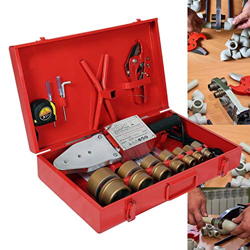 Wiltec PE-rör svetsmaskin 2000 W upp till 300°C, stumsvetsmaskin samt 7 värmedon 16-63 mm, svets för rör, muff och hylsa