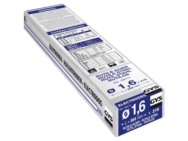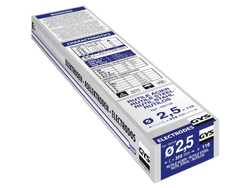GYS, MMA-stödmetall, 75 pinnar/lödbara belagda svetselektroder E6013 Ø 2,5 mm x 350 mm, halvplasthölje, för svetsning av stål alla positioner