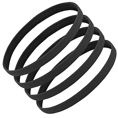 Molain elastiskt tunt sportpannband halkfria smala pannband 4-pack grepp hårband mini svettband för kvinnor och män (svart) 39,6 x 0,2 x 1,0 cm