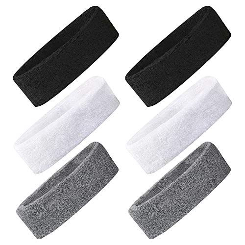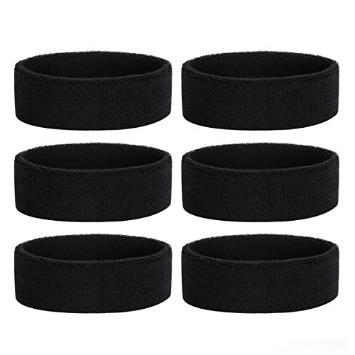 ONUPGO Svettband pannband herr och dam – 3 STYCK / 6 STYCK / 12 STYCK sportpannband fukttransport atletisk bomullsfrotté svettband svettabsorberande pannband En stil: 6 pannband - svart