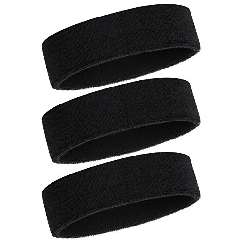 ONUPGO Svettband, pannband för män och kvinnor, sportpannband i fukttransporterande bomullsfrotté, atletiskt och svettabsorberande, 3 st (12 pannband, svarta)