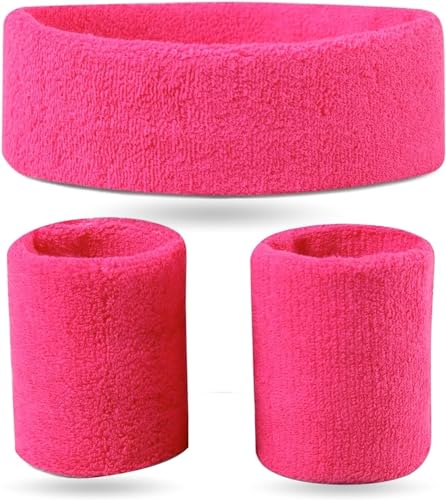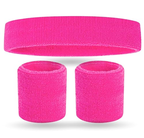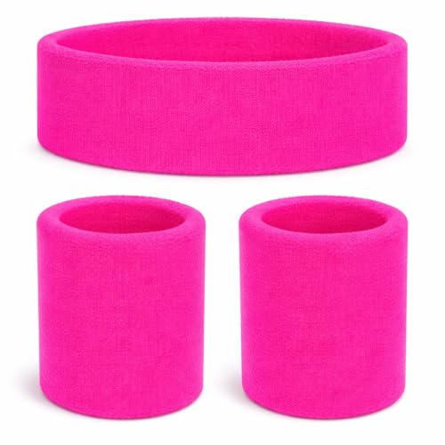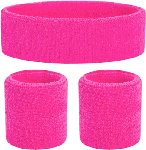 3 i 1 svettband rosa set med pannband - som tillbehör mulletdräkt för retro neon 80 -talet 90 - talskarneval & karneval