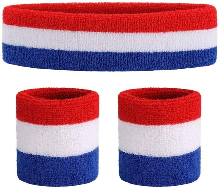 FACATH Randigt svettband set sport pannband armband set frotté tyg armband atletisk träning basket armband pannband fukttransporterande svettabsorberande bomull strippat svettband