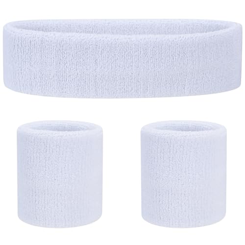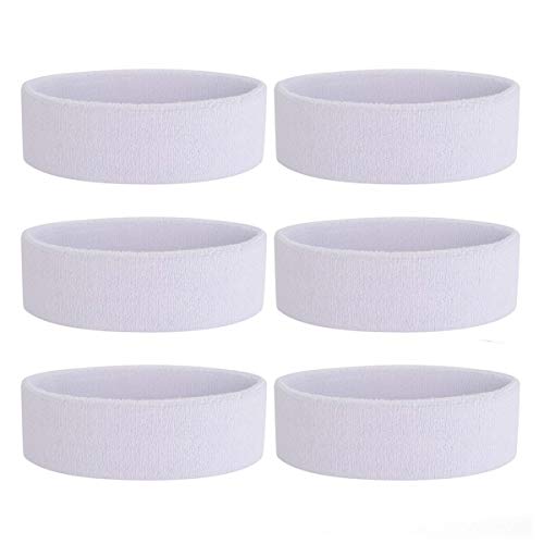ONUPGO Svettband, pannband för män och kvinnor, sportpannband i fukttransporterande bomullsfrotté, atletiskt och svettabsorberande, 3 st (6 pannband, vita)