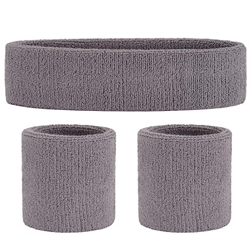 ONUPGO Svettband, pannband för män och kvinnor, sportpannband i fukttransporterande bomullsfrotté, atletiskt och svettabsorberande, 3 st