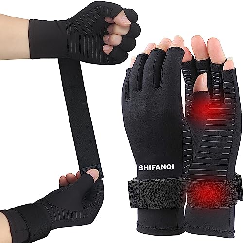 SHIFANQI 2 par koppar artrit kompressionshandskar kvinnor män för karpaltunnel, RSI, ledsmärta, svullnad, tendinit, fingerlösa artrithandskar för datorskrivning, körning (liten/medium)