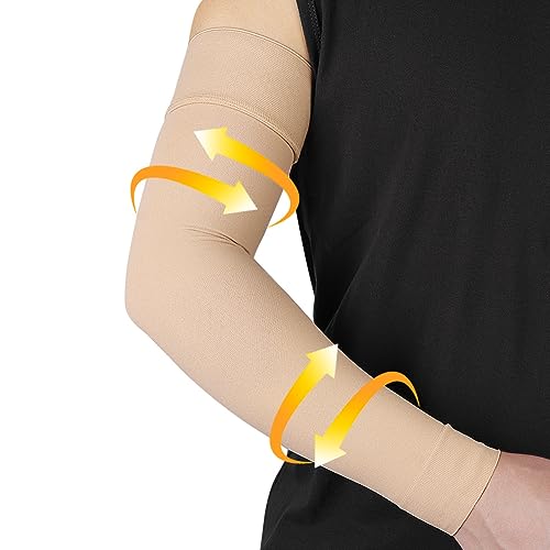 Beister Medicinsk kompressionsärm för män och kvinnor (enkel), 20–30 mmHg graderad kompression, helarmstöd med silikonband för lymfödem, åderbråck, svullnad, armskada, sporter