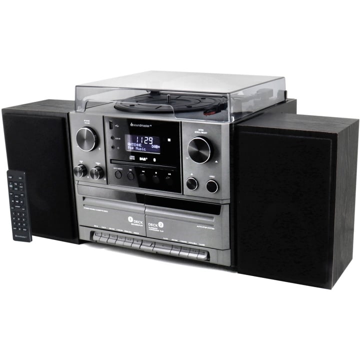 Soundmaster Musik-anläggning Vinyl Radio CD Dubbel-kassett Bluetooth Högtalare MCD5600SW Silvergrå