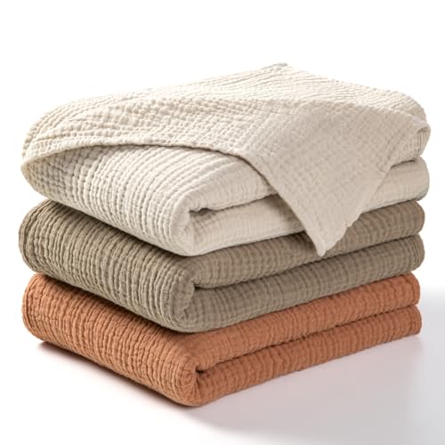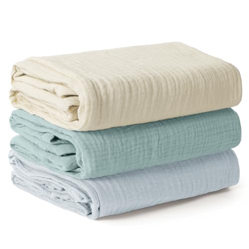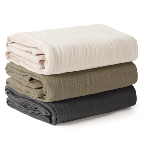 lulumoon Baby skötfilt muslinfilt – bomull tunn ventilerande babyfilt – baby swaddle filt, våtservetter för pojkar och flickor, 3-pack (oliv)