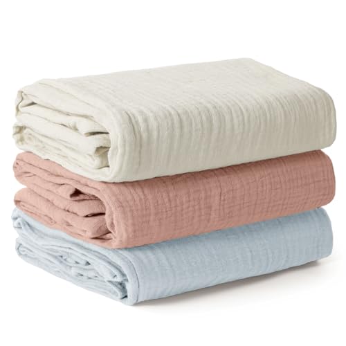 Peepeemax Baby skötfilt för nyfödda, stor muslinduk, 100 x 100 cm, mjuk, ventilerande bomull, muslinfilt, swaddle filt för pojkar och flickor, 3 stycken (Rosa)
