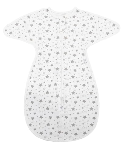 MOXTOYU Baby Swaddle Filt - 100% Bomull 0,5 Tog Nyfödd Wrap med Justerbara Ärmar och Dubbla Dragkedjor, Present till Födelsedagar till Nyfödda 0-6 m, Vit