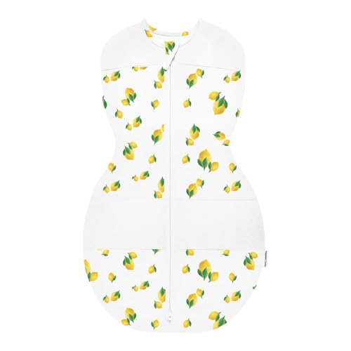 Happiest Baby Sleepea 5-Second Swaddle - 100 % ekologisk bomull baby swaddle filt - Doctor Designed främjar hälsosam höftutveckling (elfenbenscitroner, stor), Elfenben citroner, L