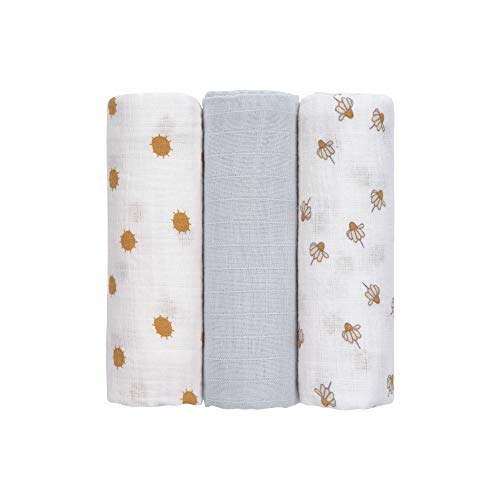 LÄSSIG Baby Muslinduk Burt Tyg Swaddle Filt Set med 3 Bomull 80 x 80 cm/Heavenly Soft Swaddle L Little Mateys Cat