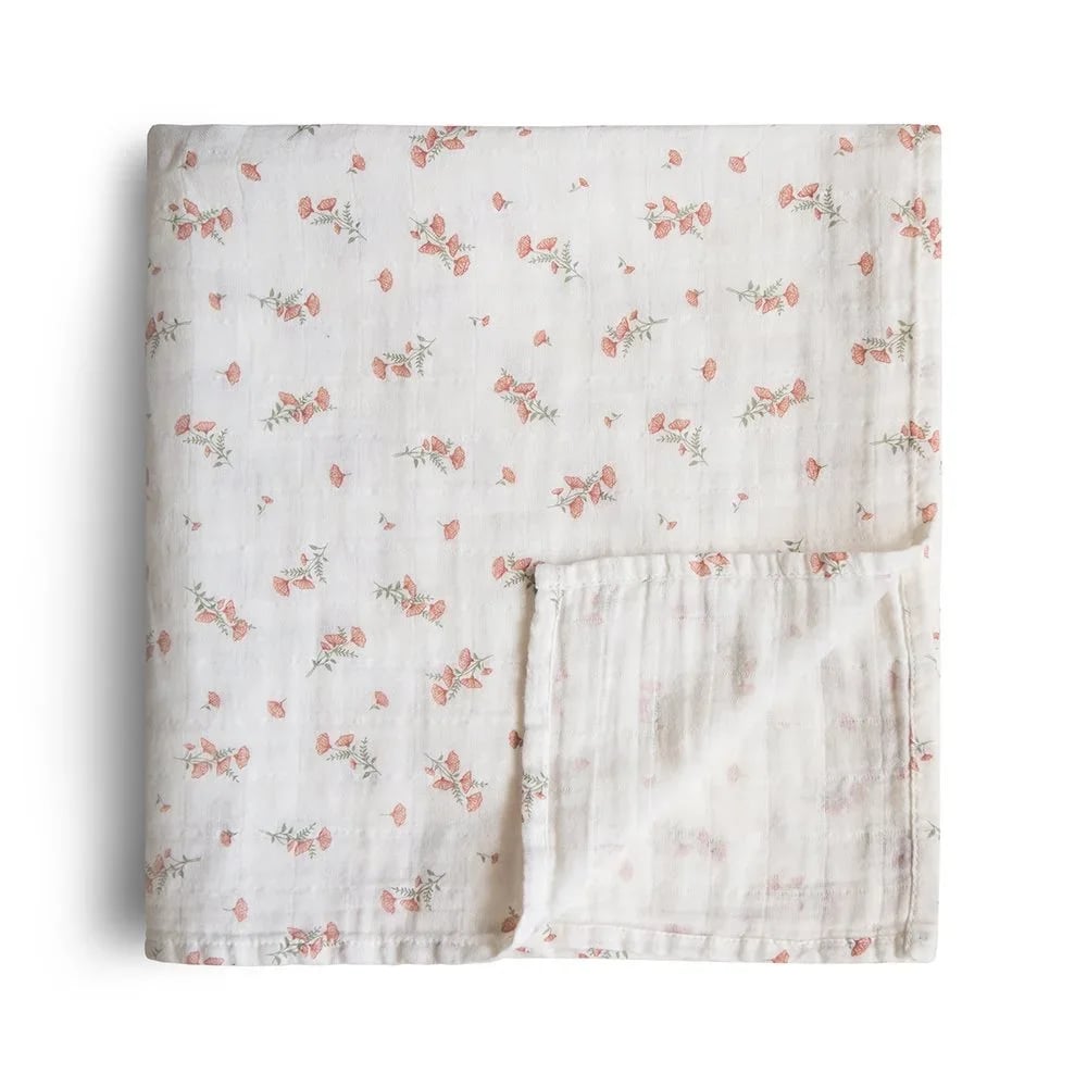 Mushie Blommig Swaddle Gräddvit One Size unisex