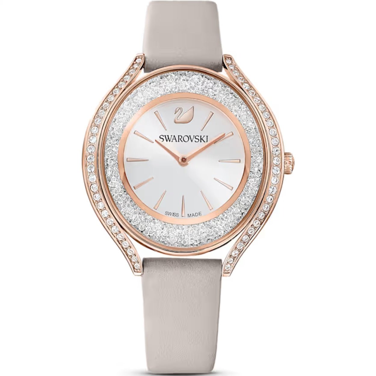 Swarovski Crystalline aura watch, Swiss Made, Läderband, Vit, Roséguldfärgad finish