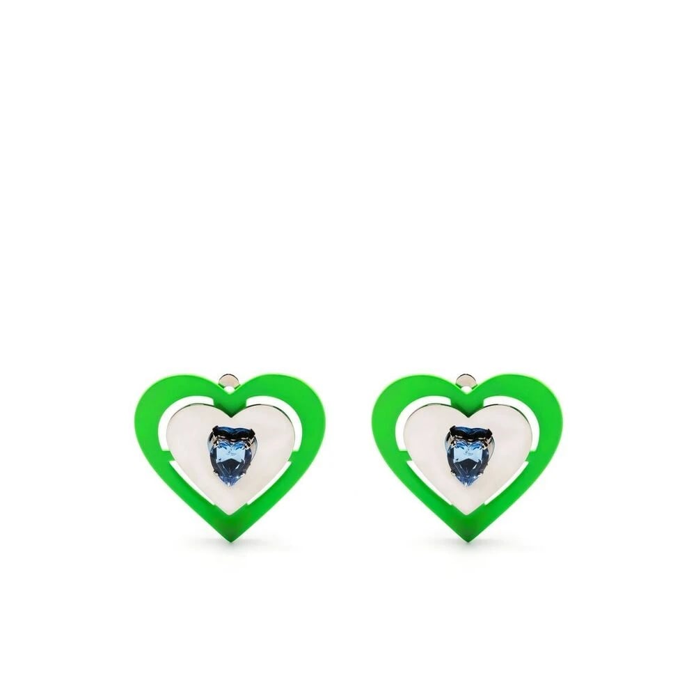 SafSafu, Accessoarer , Dam, ONE Size, Neon Hjärtformade Örhängen med Swarovski Kristaller