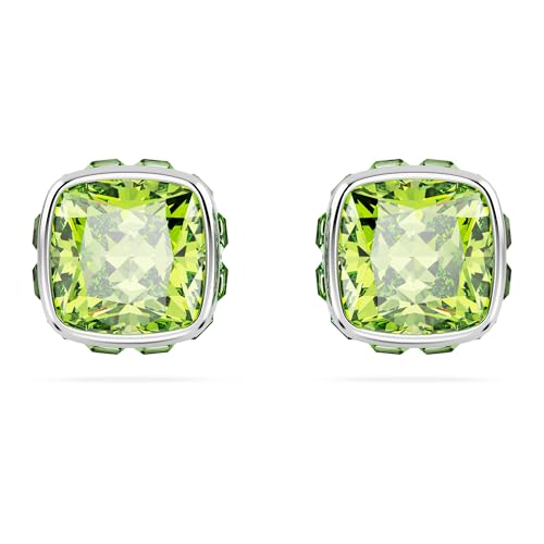 Swarovski Birthstone örhängen, fyrkantig skuren, augusti, grön, rodiumpläterad