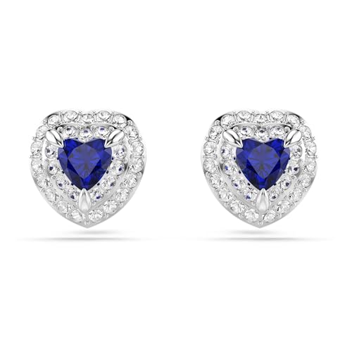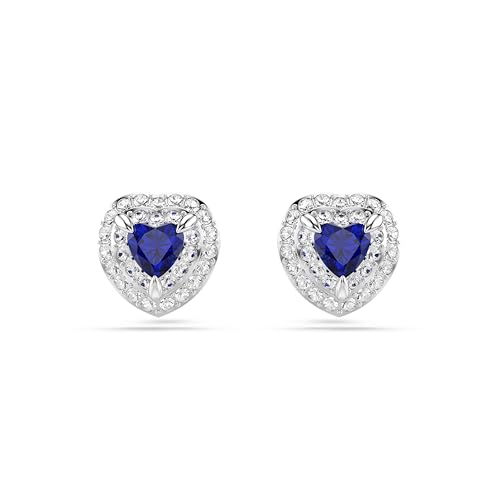 Swarovski One stud örhängen, Hjärtslipad, Pavé, Hjärta, Blå, Rodiumpläterad
