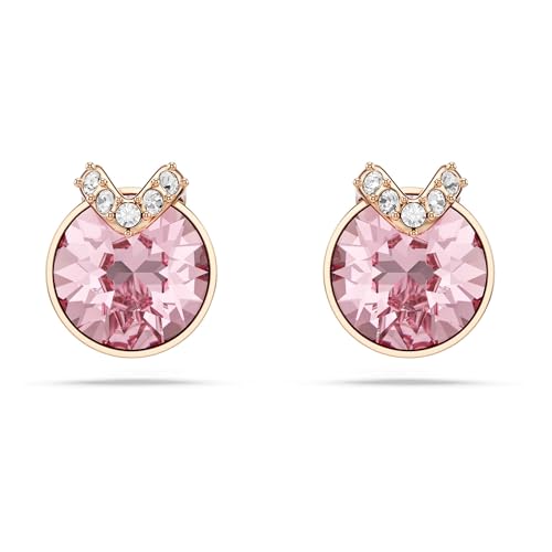 Swarovski Bella stud örhängen, Rundslipad, Pavé, Rosa, Rose guldfärgad pläterad