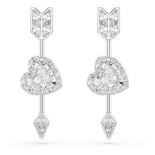 Swarovski Idyllia drop örhängen, Blandade snitt, Hjärta med pil, Vit, Rodiumpläterad