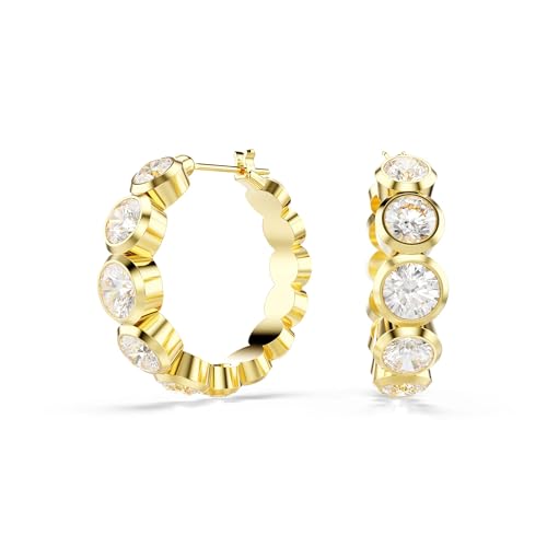 Swarovski Dextera hoop örhängen, Rundslipade, Vit, Guldfärgad