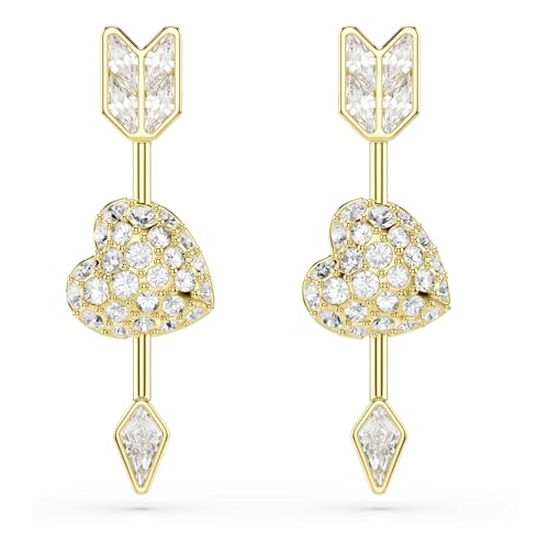 Swarovski Idyllia drop örhängen, Blandade snitt, Hjärta med pil, Vit, Guldfärgad pläterad