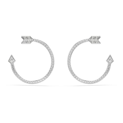 Swarovski Idyllia hoop örhängen, Blandade snitt, Pil, Vit, Rodiumpläterad