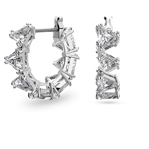 Swarovski Small Hoop Örhängen, vita triangelslipade kristallörhängen i en rodiumpläterad miljö, från Ortyx Collection
