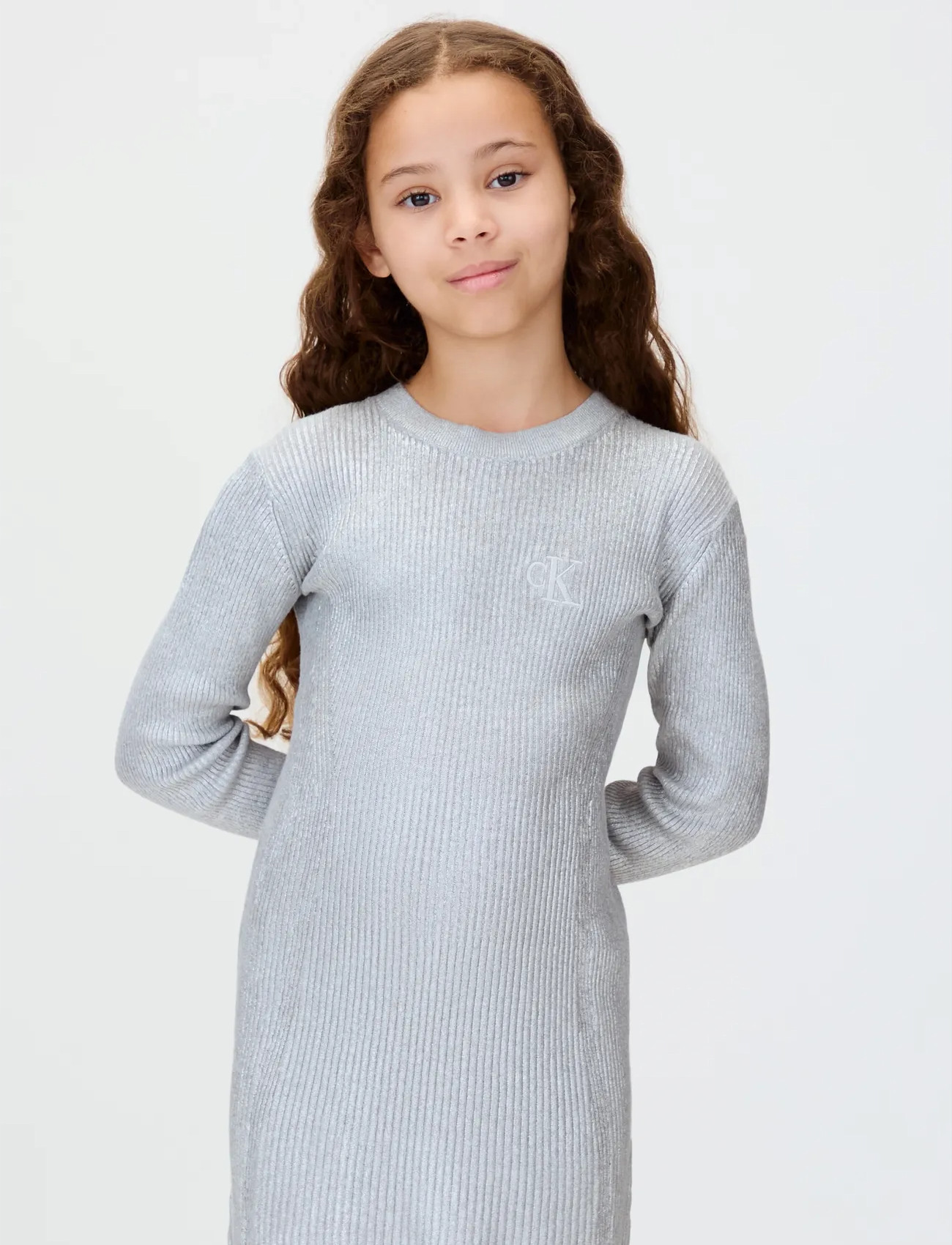 Calvin Klein Silver Coated Ls Sweater Dress - Silver - 164