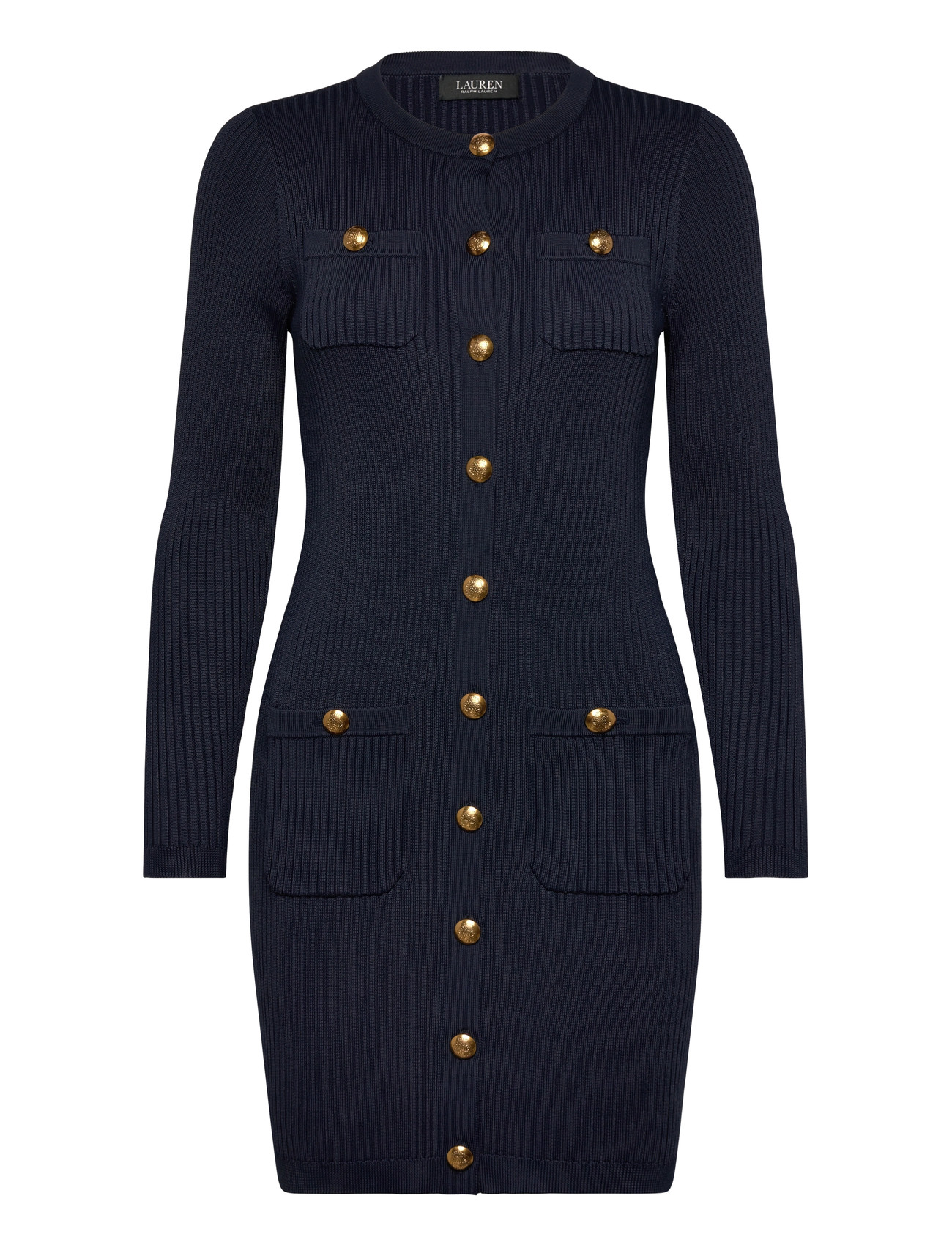 Lauren Ralph Lauren Button-Trim Rib-Knit Sweater Dress - Navy - M
