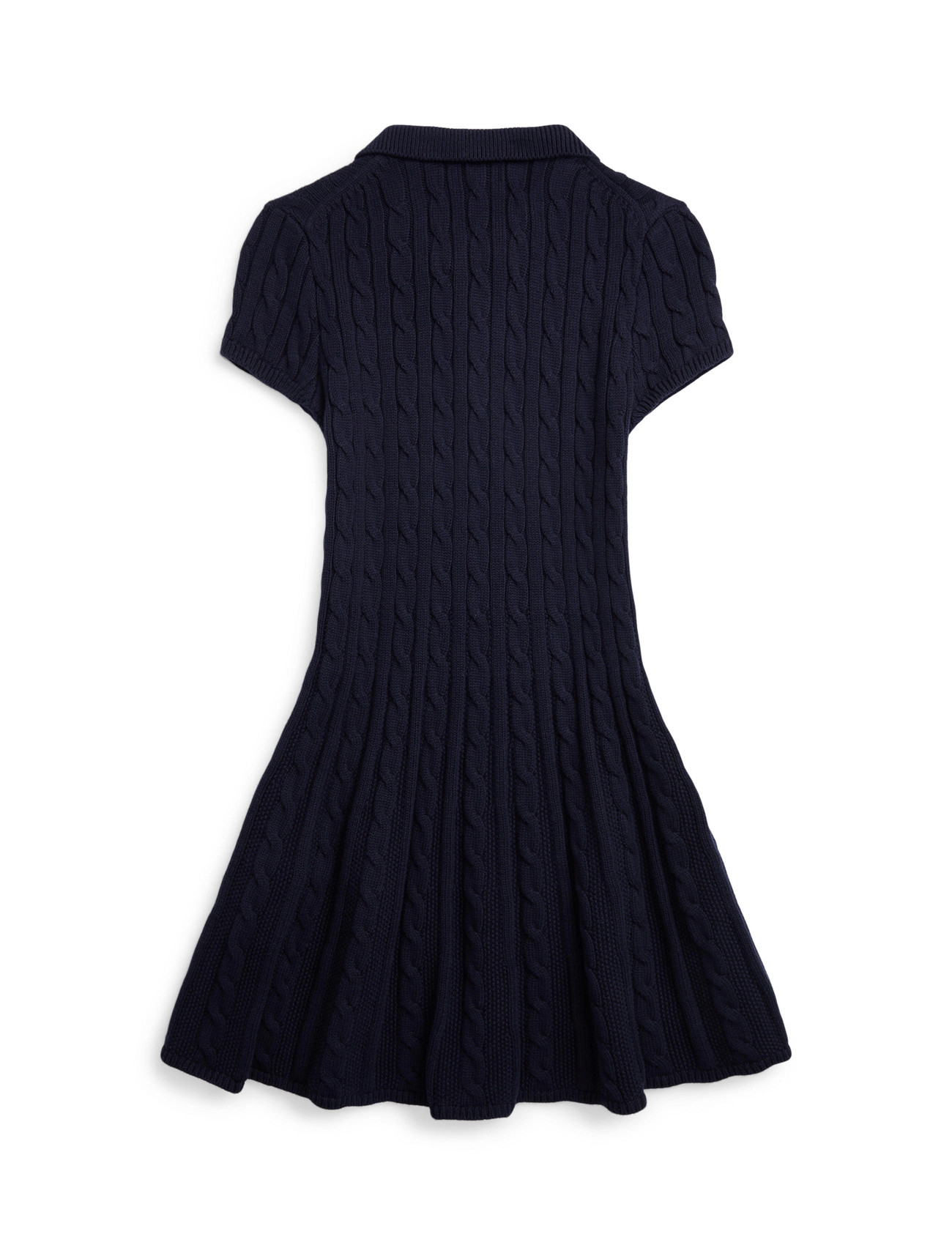 Ralph Lauren Kids Cable-Knit Cotton Polo Sweater Dress - Navy - 132-140