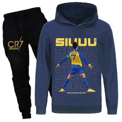 Temolie Barn Träningsoveraller huvtröja och joggingbyxor 2-delar pojkar flickor vardaglig fotboll tryck kläder sweatshirt set 4-13 år träningsoverall kläder, Marinblått Xsp, 4-5 år