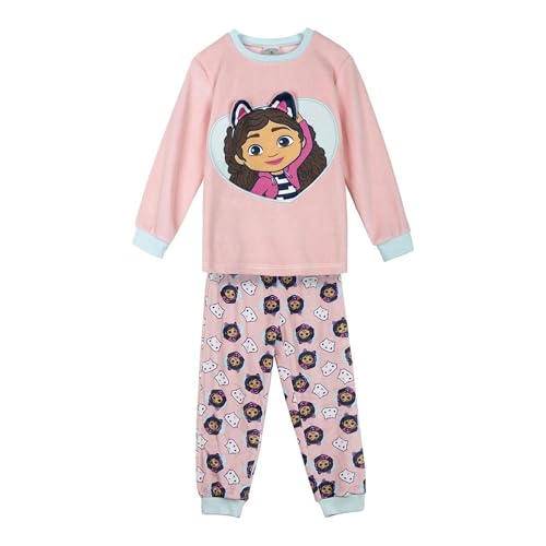 CERDÁ LIFE'S LITTLE MOMENTS Lång Korall Sweatshirt Pyjamas Applikationer Dockhus av Gabby Pajama Set Unisex-Barn och Tonåringar, Rosa, 4 år